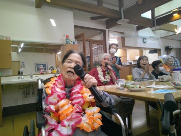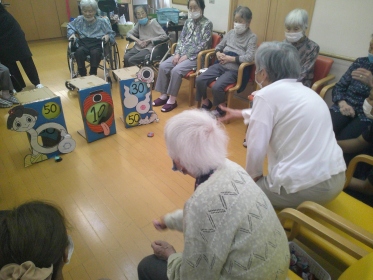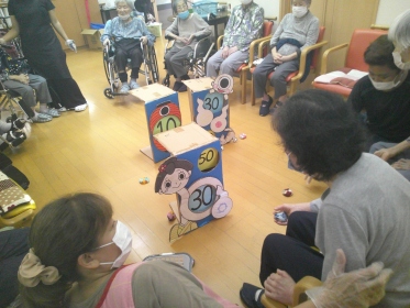 午前中は、釣りゲーム・的当て・盆踊り、午後はお菓子をつまみながらのカラオケ大会を行いながら皆様楽しまれておりました。