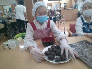 本日の午前中はおはぎづくりをしました。