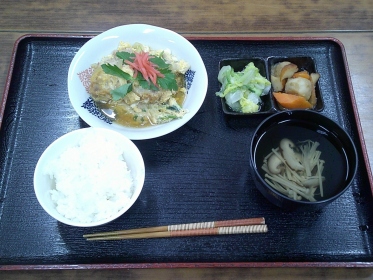 職員の食事は食器の関係で別盛になってしまいましたが、皆様は丼を抱えながら、「美味しいね」と、舌鼓を打っておられました。