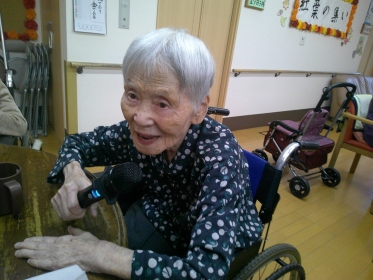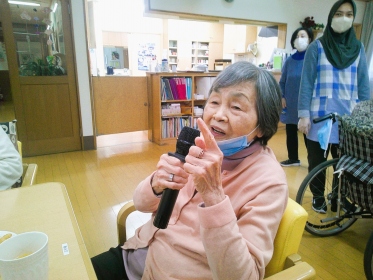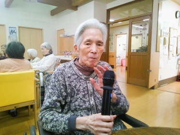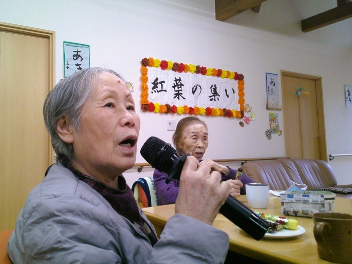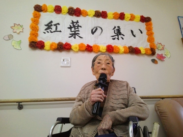 《紅葉の集い》の午後の部は、おやつやジュースをつまみながら、皆様一緒に《カラオケ》を楽しまれました。