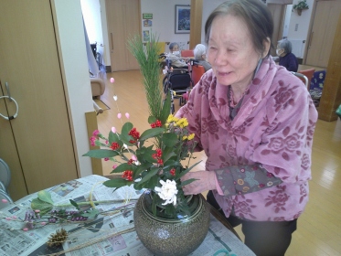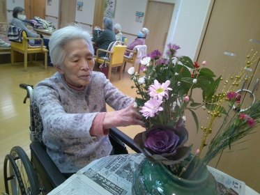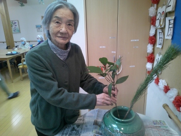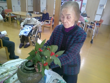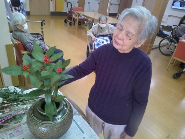 利用者様の皆様が、良き年を迎えられるよう願いを込めて生けました。