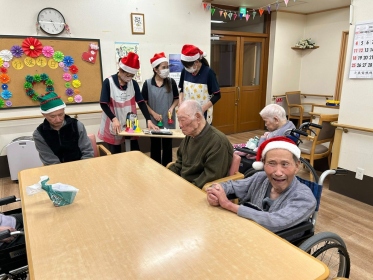 クリスマスソングを唄い、輪投げ・ボール渡しなど、たくさんゲームをして、