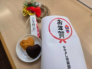 美味しいお菓子とタオルの記念品で新年を祝いました。
