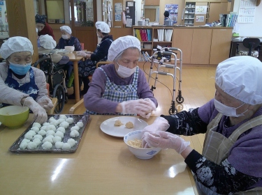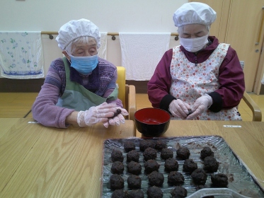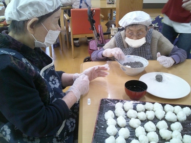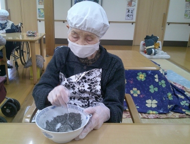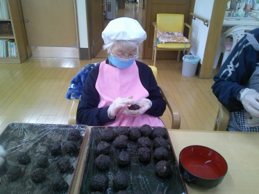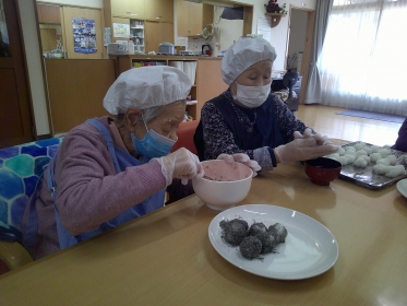 本日は、春のお彼岸のおはぎを皆さんで作りました。