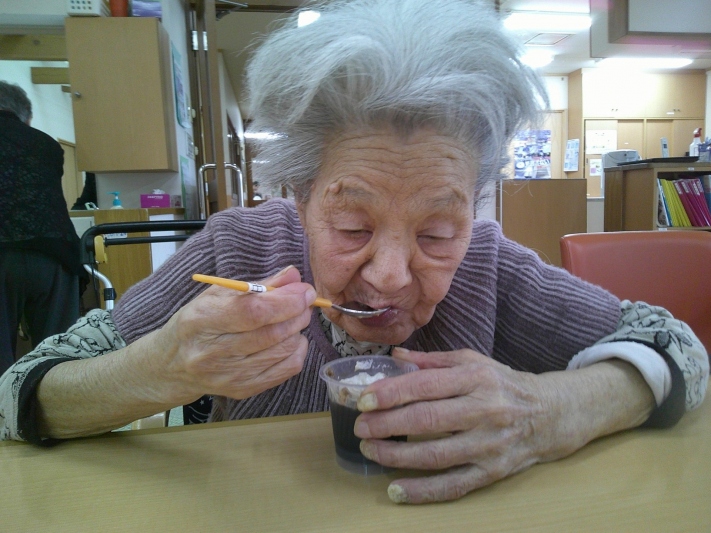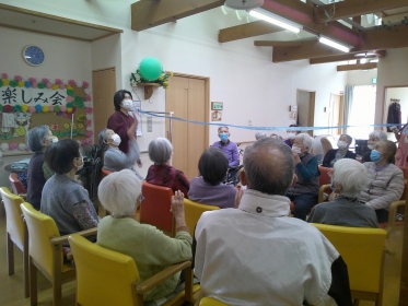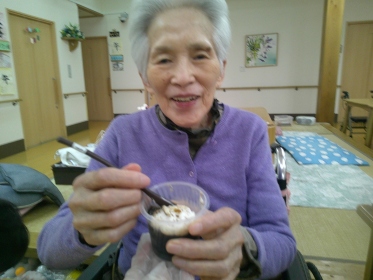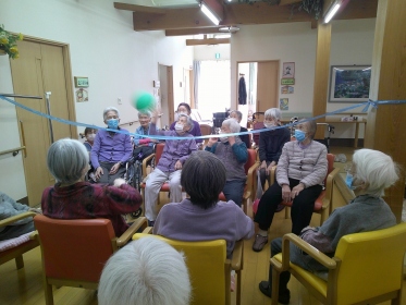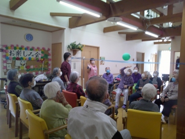 風船バレーをして楽しみ、おやつはコーヒーゼリーを召し上がりました。